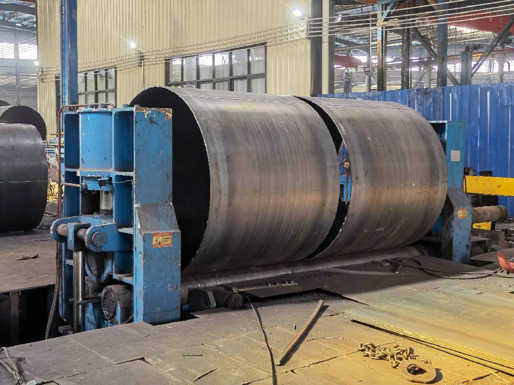 產(chǎn)品說明:螺旋管是以帶鋼卷板為原材料,經(jīng)常溫擠壓成型,以自動雙絲雙面埋弧焊工藝焊接而成的螺旋縫鋼管。螺旋鋼管將帶鋼送入焊管機組,經(jīng)多道軋輥滾壓,帶鋼逐漸卷起,形成有開口間隙的圓形管坯,調(diào)整擠壓輥的壓下量,使焊縫間隙控制在1~3mm,并使焊口兩端齊平。(1)原材料即帶鋼卷,焊絲,焊劑。在投入前都要經(jīng)過嚴(yán)格的理化檢驗。